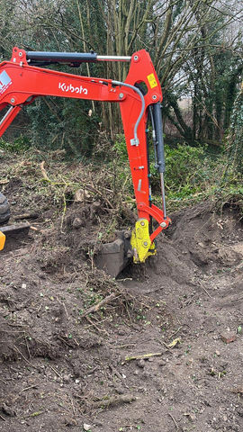 The Wendover Parish Council grounds staff kindly offered to clear and level the site for the Groundhog container. Work started in the cold with the clearing of some bramble and dead shrubbery. The levelling work needed some serious kit, so a 5 tonne crane was brought in just as things thawed and got muddy!